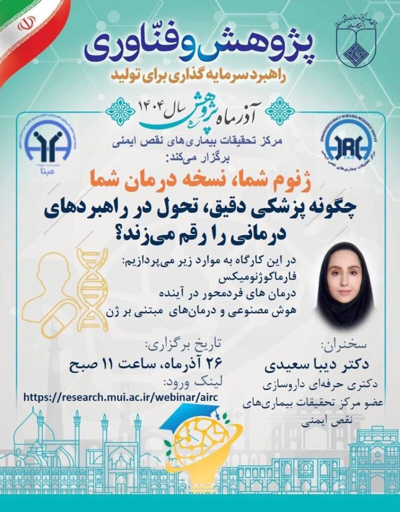 کارگاه آموزشی مجازی با عنوان ژنوم شما،نسخه درمان شما:چگونه پزشکی دقیق ،تحول در راهبردهای درمانی را رقم می‌زند؟